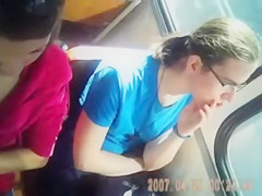 This cutie that was sitting just in front of him was so cute that that guy just now got an erection. That Guy had no other choice but to fondle her head with his jock.