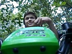 Breana in bitch gives face hole gagging bj in the outdoors