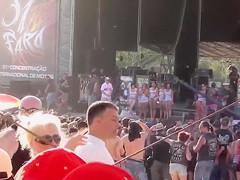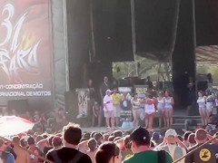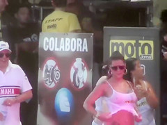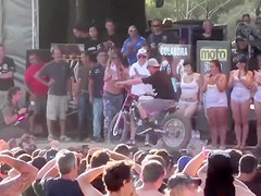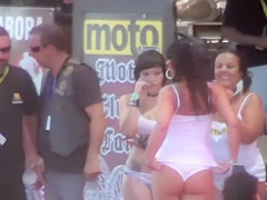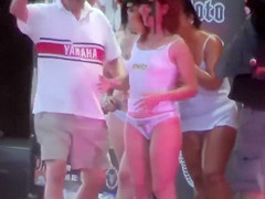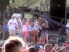 Hawt ladies decided to acquire onto a stage where their raiment were splashed with water, thus making 'em transparent to the great joy of the studs in the crowd.