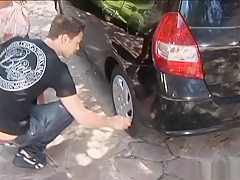 Breana in bitch gives face hole gagging bj in the ou...