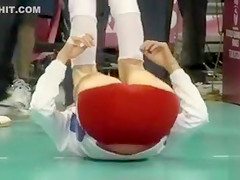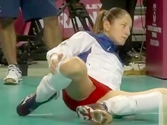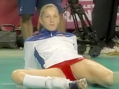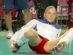 She’s gorgeous, tall, lengthy-legged, and super sporty and we receive to see all her warm up stretches as this babe acquires willing for a match. Her crotch is quite admirable in red spandex shorts.