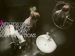 To remind everybody they need to be careful about infections when having casual sex, they make a PSA with a lady very carefully peeing in a public water closet.
