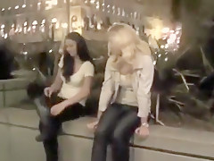 2 sexy girlfriends have sex outdoors