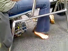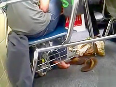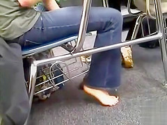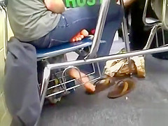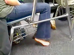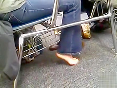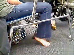 I have a thing for nice-looking feet and had to film hers as we sat throughout a boring class. They keep bouncing around and I love how glamorous her painted toenails look.