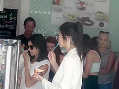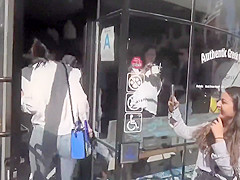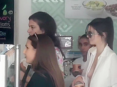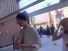 Her bra buddies nearly poured out of her white shirt, as a renowned lady tried to run away from the paparazzi. As her fans chased her down, her large arse bounced in taut jeans.