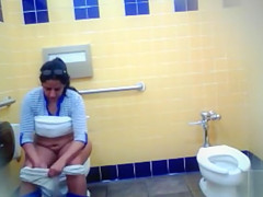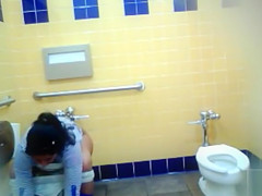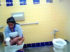 Thick Mexican woman makes water and washes her genitals in the restroom