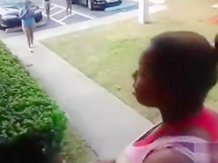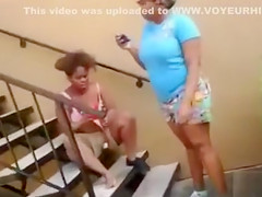 Trashy dark honeys fighting at the apartment complex