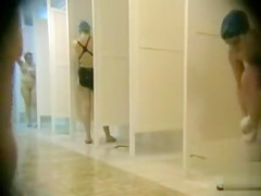 After swimming in the gym pool those ladies need to clean off the chlorine and the secret camera is pointed perfectly to enslave dozens of female bodies getting moist.