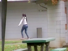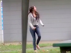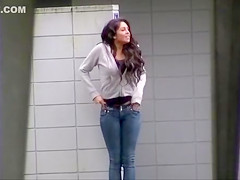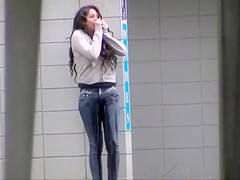 This Babe runs to the restroom but when this babe finds it locked the curvy gal has no choice but to pee her jeans. That Babe looks constrained as they acquire absolutely wet with urine, but pretty soon it’s over.