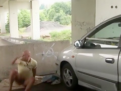 Breana in bitch gives face hole gagging bj in the ou...