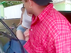 Breana in bitch gives face hole gagging bj in the ou...
