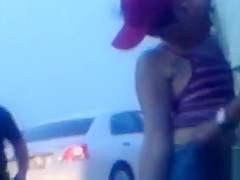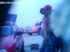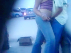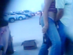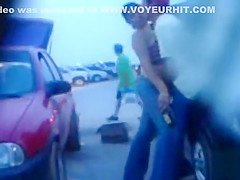 His hand is firmly in her jeans and that guy works her twat relentlessly to give his lady an agonorgasmos. The parking lot is busy but this chab doesn’t give a damn about that.
