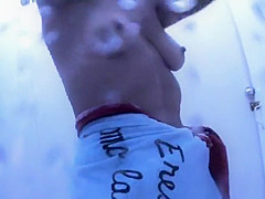 She’s recent off the beach and crazy to shower so this babe disrobes out of her bikini and acquires clean whilst a hidden camera watches her, getting a close up on her bushy cookie.
