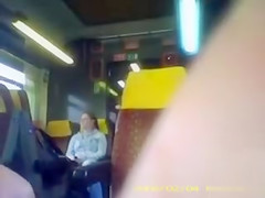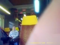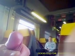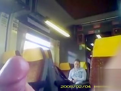As the honey across his seat was looking gorgeous hawt, the man had no other choice but to begin masturbating, catching her attention and having an big O in the end.
