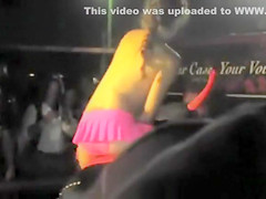 People are always gathering around the bull when some hawt nymph is about to ride it, hoping that they will watch her curves. This hotty takes her top off right away.