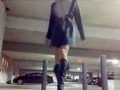 Public play turns her on and she’s in the corner of a parking structure where that babe can open her coat to flash her whoppers and cunt, and fill her taut aperture with a marital-device.