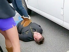 Sexy hitchhiker gets slammed about the roadside