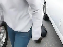 Breana in bitch gives face hole gagging bj in the ou...