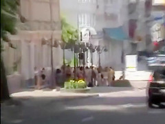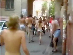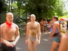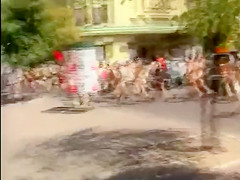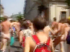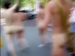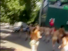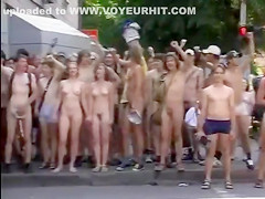 Nudists take a stroll throughout the town streets