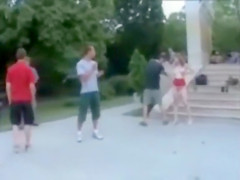 Hawt naked model in a public park
