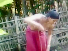 Topless Indian wife washes herself