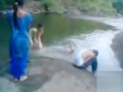 In Nature's Garb Indian dilettante legal age teenager swims in the river