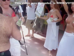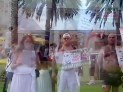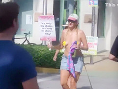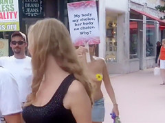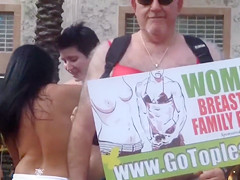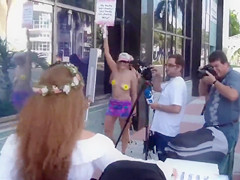 Topless protest on the Miami beach of Florida