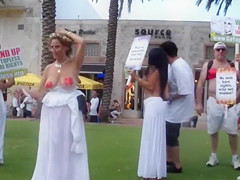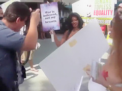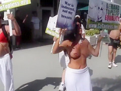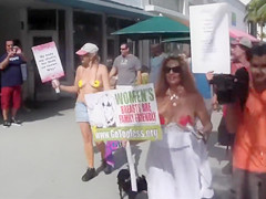 In order to show how important this fight is for 'em, those ladies decided to pull down their bras and expose the breasts to everybody on the streets of Miami.