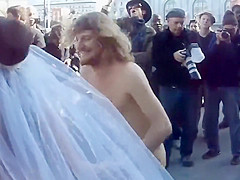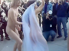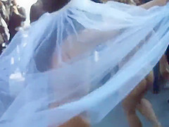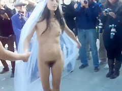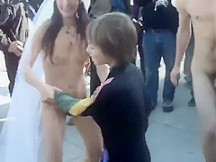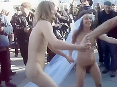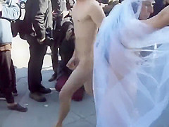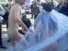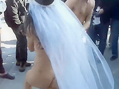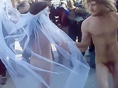 Having just been married, a nice-looking bride and her lewd groom nude down absolutely nude and danced around in a circle with their boy-friend.