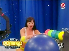 Clothed in taut spandex workout raiment, this beautiful and super fit playgirl dances, does a workout with a ball, makes a stud smell her haunches, and bowls to entertain.