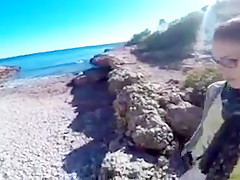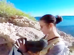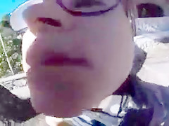 Breana in bitch gives face hole gagging bj in the outdoors