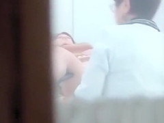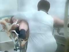Filmed illicitly from around the corner, the episode shows a cutie taking off her bottoms and widening her legs so the gynecologist can examine her cookie.