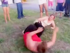 They got into a quarrel and it was just a matter of time when will they receive into a fight. Take a look how they roll on the ground with their bras beautiful simple to watch.