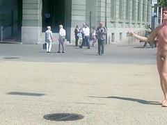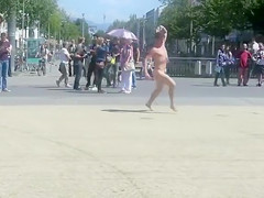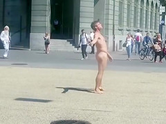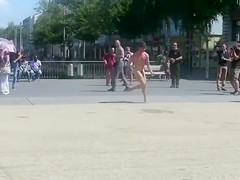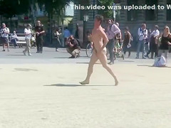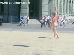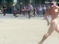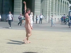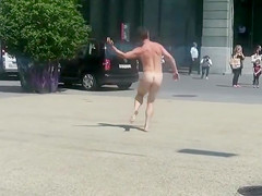 Undressed dude runs around a public square and acquires attention