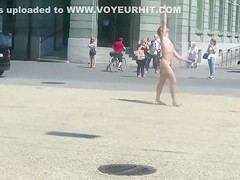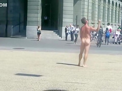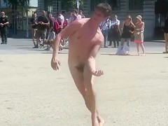 Dozens of people have gathered as the seemingly mad nude chap runs around in circles. It looks like a performance, but this guy likewise appears to be nuts and like this chab doesn’t know anyone is there.