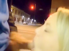 Oral-Service on a street corner from his sexy girlfriend