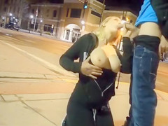 She’s pretty and breasty and down on her knees on this street corner to engulf his 10-Pounder. It takes him less than 2 minutes to cum on her beautiful face thanks to the thrill.