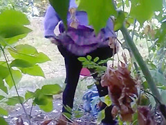 As this guy makes his way throughout the woods the large a-hole of this old woman comes into view and u can watch she’s piddling. That Babe wipes her aged wet crack clean in advance of going on her way.