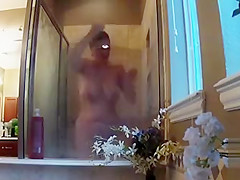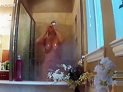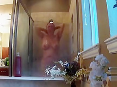 My bulky maternal aunt takes a good shower