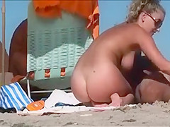 Concupiscent moist cookie of sunbathing beach gal  filmed