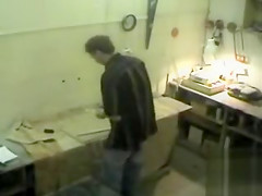 Sex on a work bench with his slim girlfriend