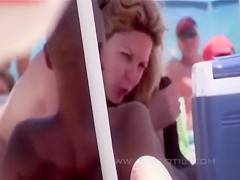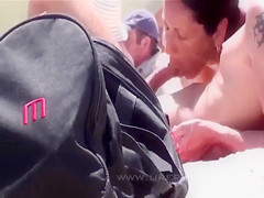 Hotty with plug in the a-hole positions for a lad at a public beach