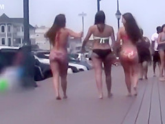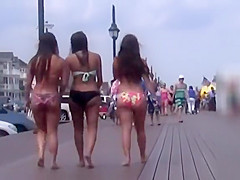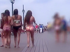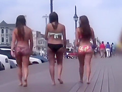 3 gals with large butts on the boardwalk