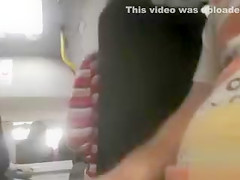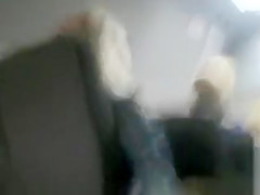 This Guy boldly has his panties around his ankles whilst sitting in the back of the bus and jerking off to the golden-haired woman in front of him. This Chab clearly likes filming the exposure.
