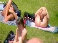 Hotty with plug in the a-hole positions for a lad at a public beach