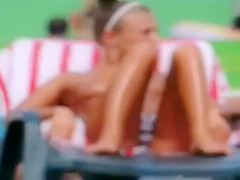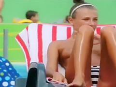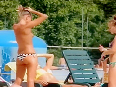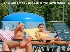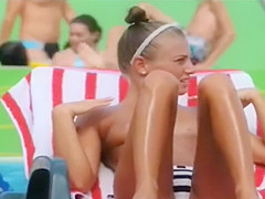 Topless slender gal looks hot at the water park