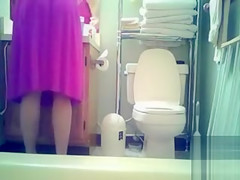 This Babe pulls the costume up to her waist, sits on the throne room bowl, and goes pee as my camera in the bathtub films her. When that babe stands up her butt is utter perfection and completely stripped.