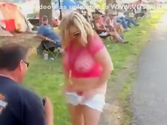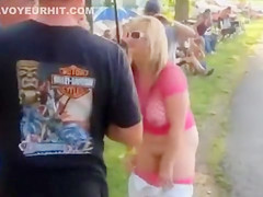 Hundreds of bikers have shown up at the park for this gathering and a massive mangos golden-haired playgirl is here to please. That Babe shows off her cum-hole and large natural wobblers and lots of people take images.