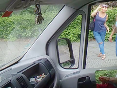 Stud flashing weenie in car to chicks and they wish to engulf his jock
