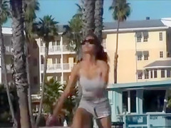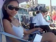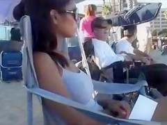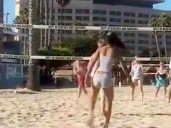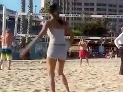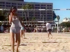 No brassiere is necessary below her reservoir top and her big bra buddies look outstanding with her puffy nipps pushing throughout as that babe plays volleyball, relaxes in the sand, and smiles.